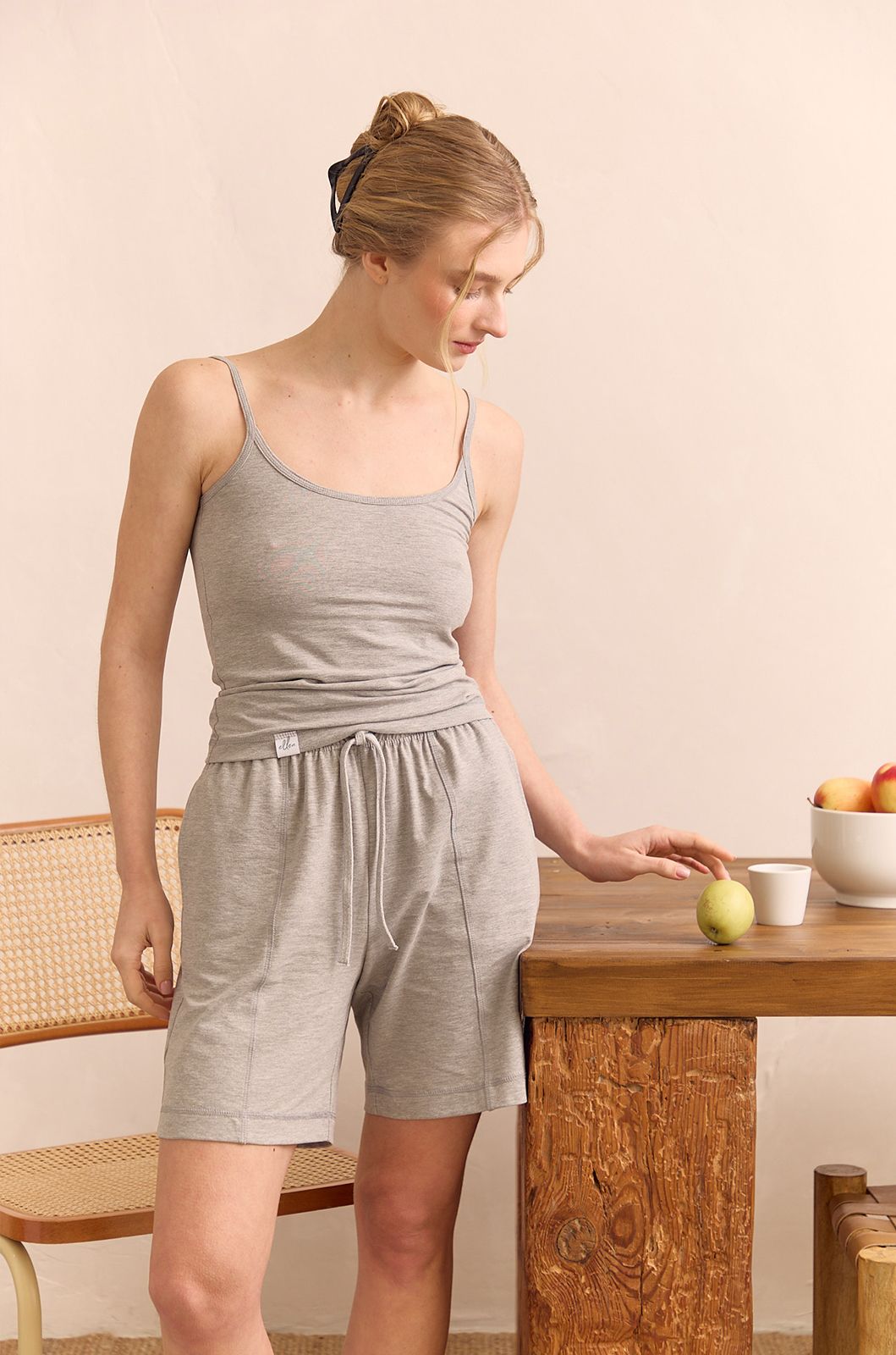 Basic new 40 Ellen — це базова жіноча майка сірого кольору, яка ідеально підходить для щоденного використання. Виготовлена з високоякісного трикотажу, до складу якого входить 75% бавовни, 20% поліестеру та 5% еластану. Такий склад забезпечує приємну на дотик текстуру, стійкість до деформації та комфорт під час носіння.