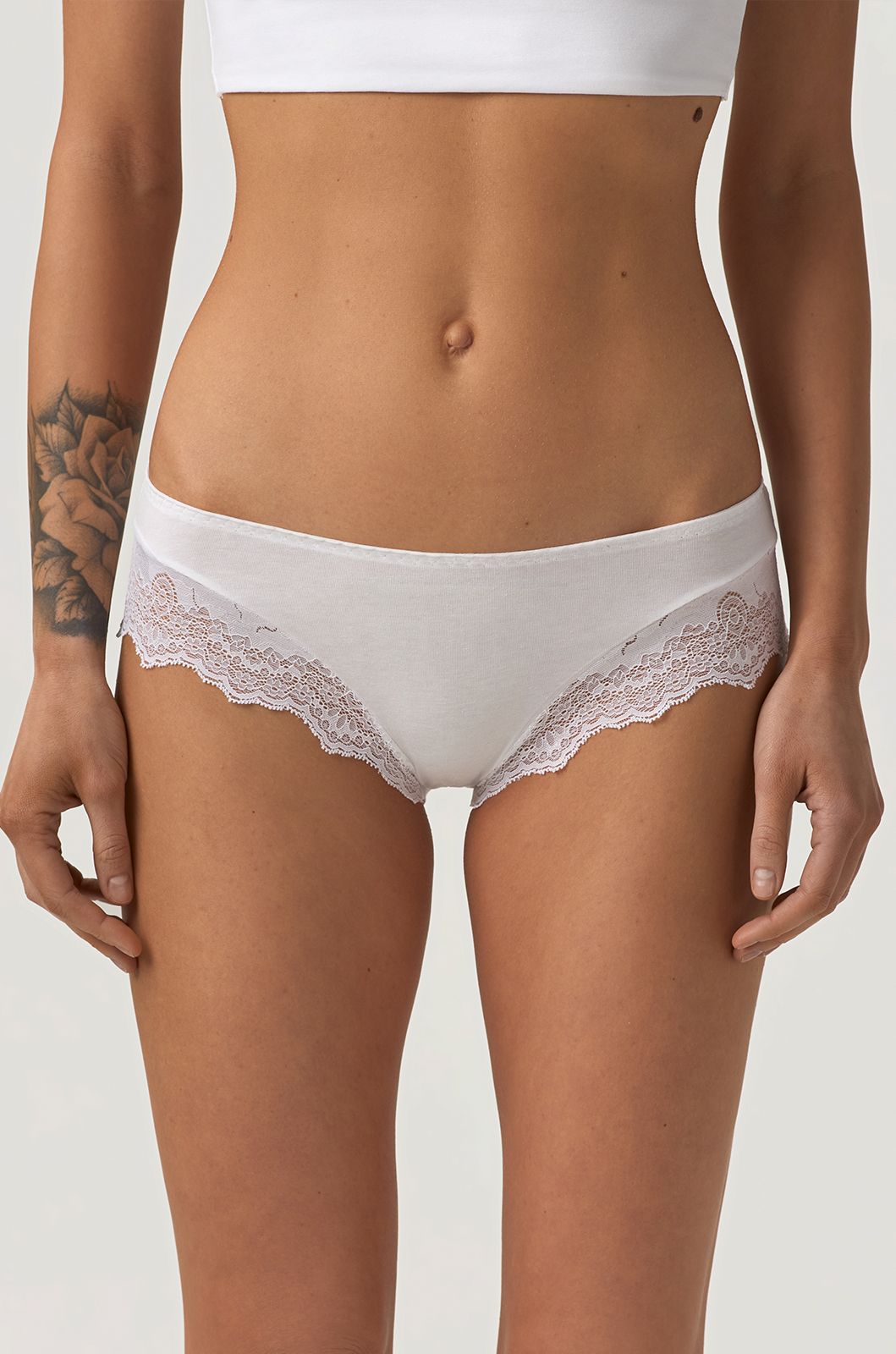 Жіночі труси Constanta Ellen Group у класичному стилі – це вдале поєднання елегантності та щоденного комфорту. Модель виконана у ніжному молочному кольорі та прикрашена делікатним мереживом, що додає виробу жіночності. Завдяки складу тканини (46% бавовна, 46% модал, 8% еластан) труси добре пропускають повітря, приємні до тіла та зберігають форму після прання. Ідеально підходять для щоденного використання, даруючи легкість і впевненість упродовж усього дня.